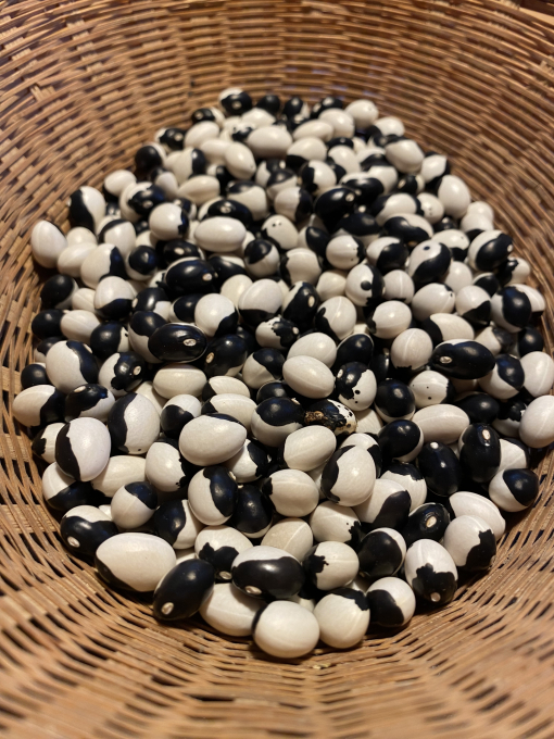 Iögonfallande sprit-/kokböna. Alla hundägare vet precis vilken täckning de här bönorna har. Eller om du gillar mjölkkor. Tydligt markerade i svart och vitt. Yin och Yang. Mycket dekorativa som dessutom blir mogna ganska tidigt på buskiga plantor. De något platta välfyllda baljorna blir kring 14 cm. Under en normal sommar hinner de mogna fullt ut hos oss i zon 3 och sprider förundran och glädje på matbordet. Dalmatinbönan, som troligen kommer från Tjeckien, kan även njutas som tidig grön skärböna och har odlats under lång tid både för sitt utseende och sin robusta bönsmak.