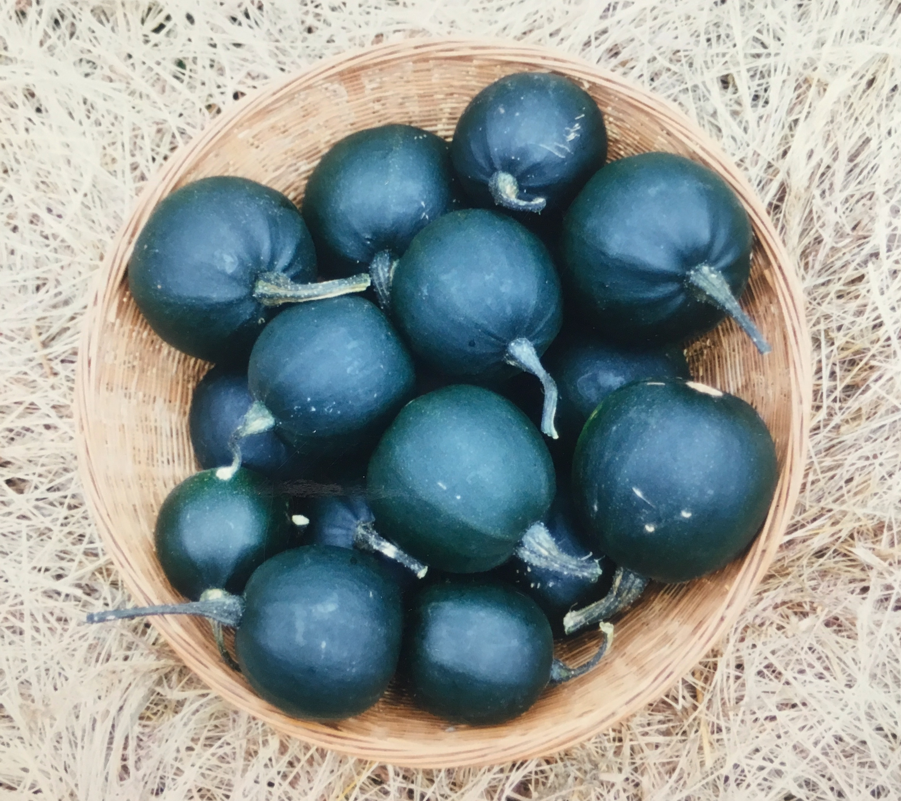 Det enklaste sättet att förvara frukterna är att bara lägga dem som prydnad på en hylla i köket eller i ett rum och sedan äta upp dem efterhand. Eller så snart de visar tecken på något mögelangrepp. Oftast vid skaft- eller blomändan. Vi har förvarat många frukter i över ett år på det sättet.