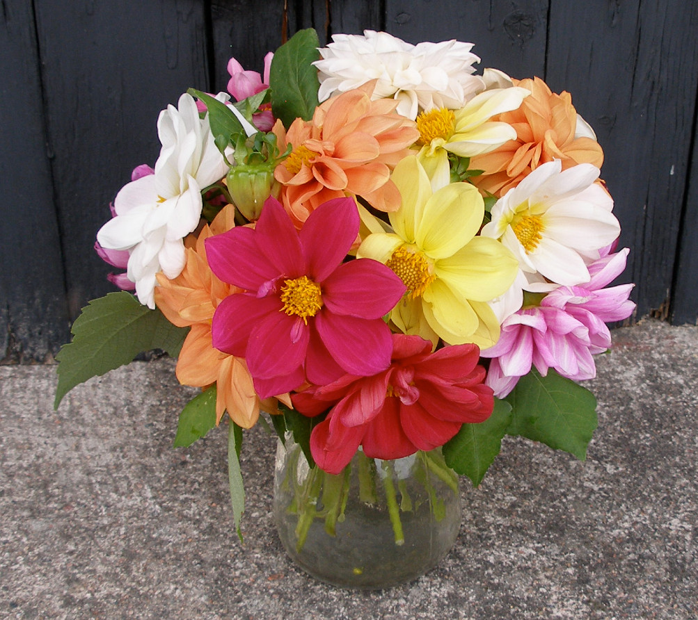 Sommardahlia med halvfyllda blommor i blandade färger. Hette tidigare Dahlia variabilis.