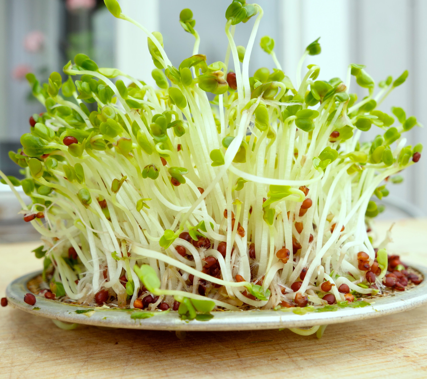 Brassica juncea. Kryddig kål med tydligt sting i smaken. Snabbväxande. Gror på 4-5 dagar. En portion innehåller cirka 15 g frö.
