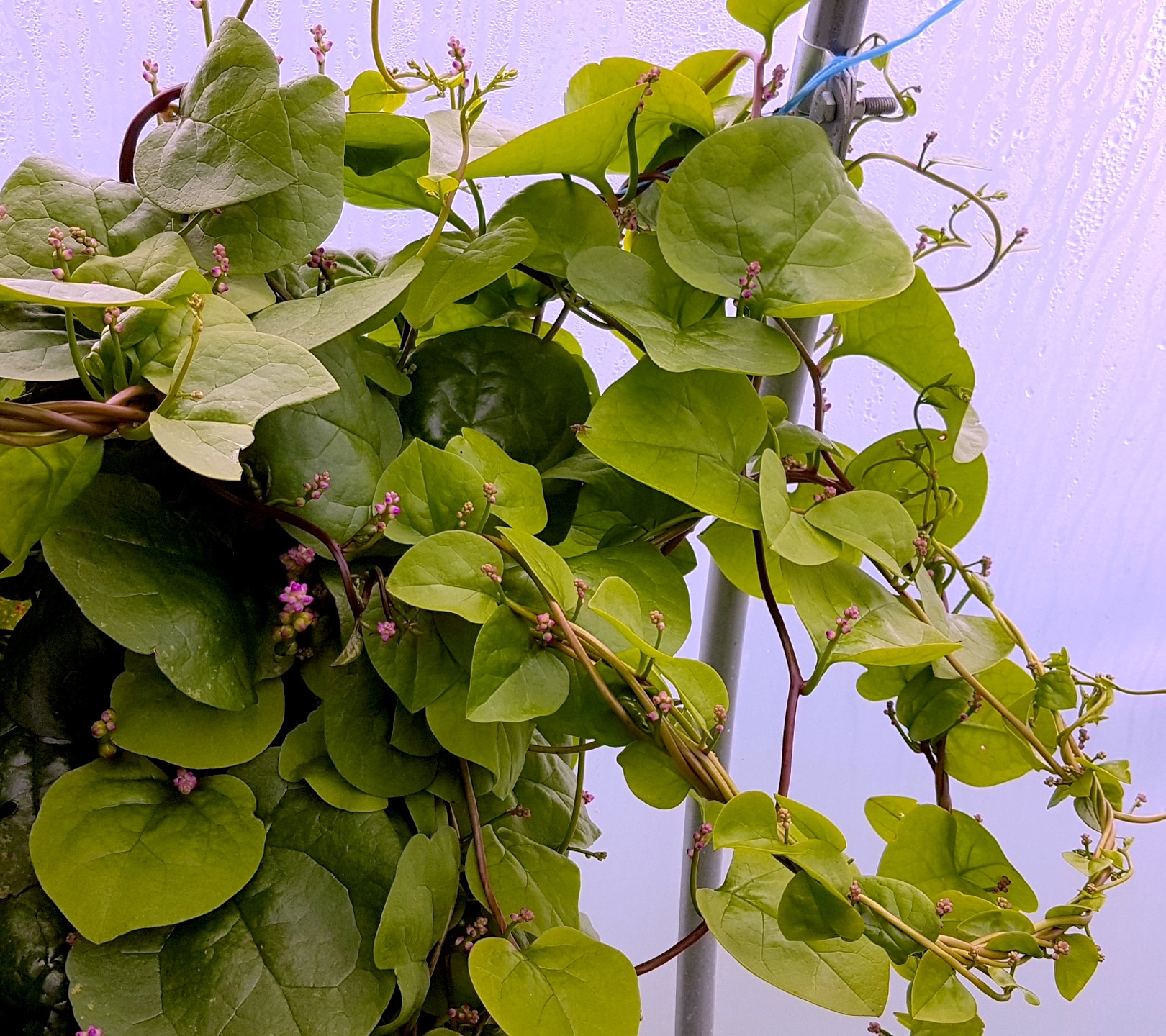 Vacker, värmeälskande lian som älskar sol. Den förekommer i två varianter, en grön och en röd. Den röda har glänsande mörkgröna blad och vinröda stjälkar och nerver och rosa blommor. Malabarspenat är ett utmärkt alternativ till vanlig spenat. Den är mycket näringsrik med höga halter av A och C vitamin, likså av järn och kalcium.