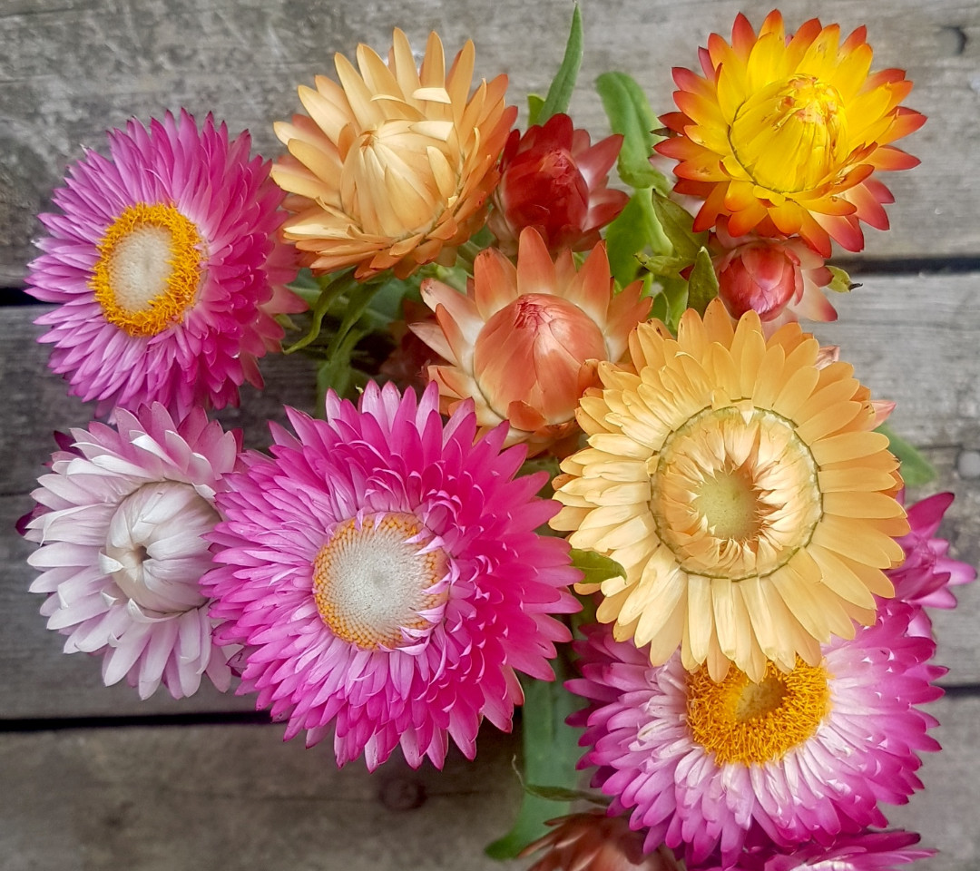 Korgblommig. Ettårig. Kommer från Australien där den växer som perenn. Skördas innan de är helt utslagna och torkas hängande på en sval, torr plats. Kan också användas fullt utslagen som snittblomma. Trivs i en genomsläpplig, humusrik jord i full sol. Frostkänslig. Höjd 80 cm.