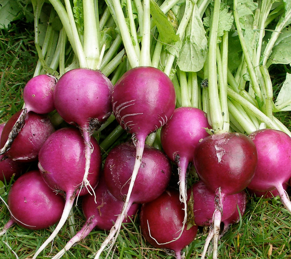 Den mest fantastiska rädisa vi provat. Det är en tidig, klotrund och violett rädisa med ett saftigt, fast och vitt kött. Den kan bli större än en pingisboll utan att bli det minsta svampig och kan stå skördefärdig längre än de flesta. Plum Purple är en vacker, stor och god rädisa för friland från tidigaste vår till sen höst. En portion innehåller ca 200 frön.