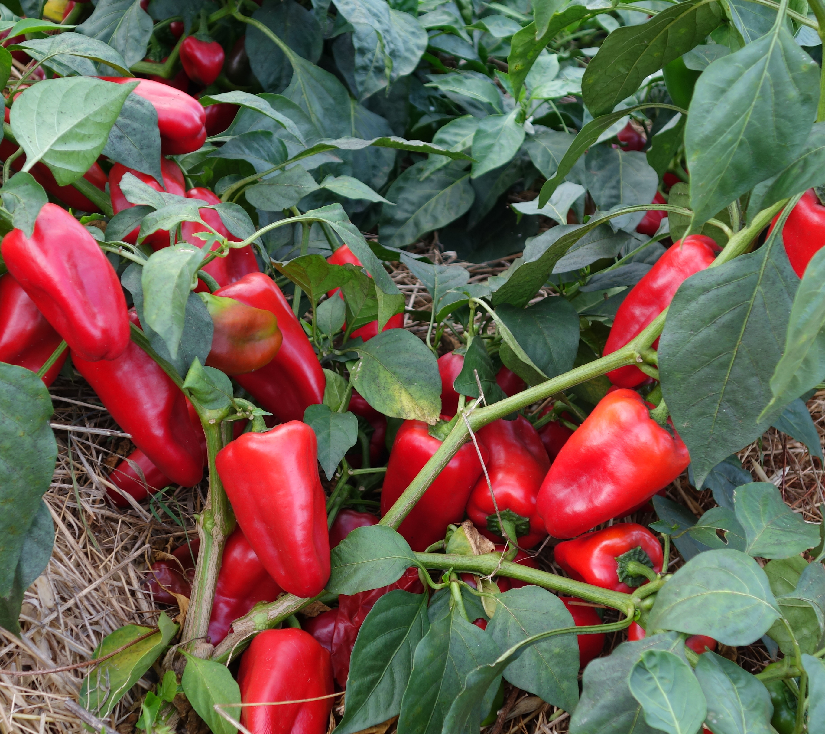 Frukterna skördas ibland gröna, men är inte helt mogna förrän färgen skiftat till rött. Eller till gult, orange och brunt för en del sorter. Plantan sätter ny frukt så länge den skördas.Frö