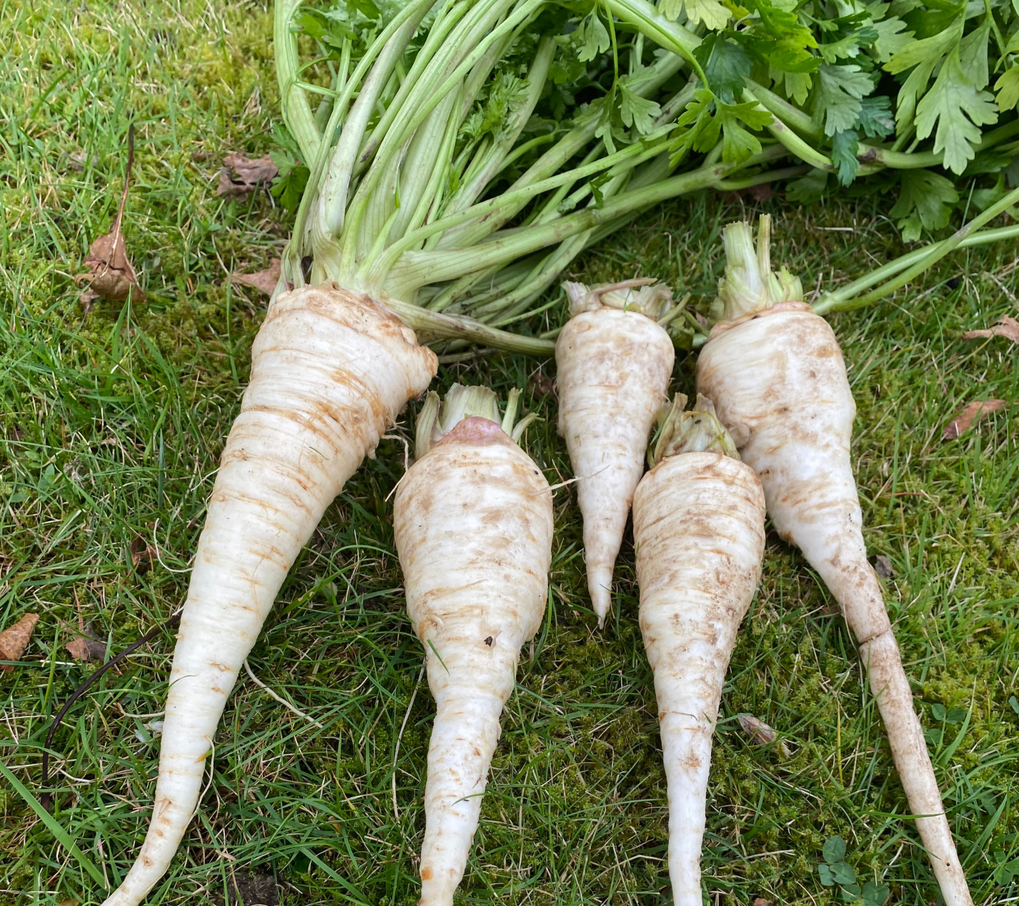 Skörda sent, samtidigt med palsternackan och förvara och använd dem på samma sätt. Täckt med växtavfall i en väldränerad jord, övervintrar den utmärkt och ger en delikat rot och en massa persiljeblad tidigt på våren.Frö
