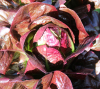 Bladen är svagt buckliga och övergår från ljusgrönt i botten till vinrött längre upp. Rödare ju svalare vädret blir.
