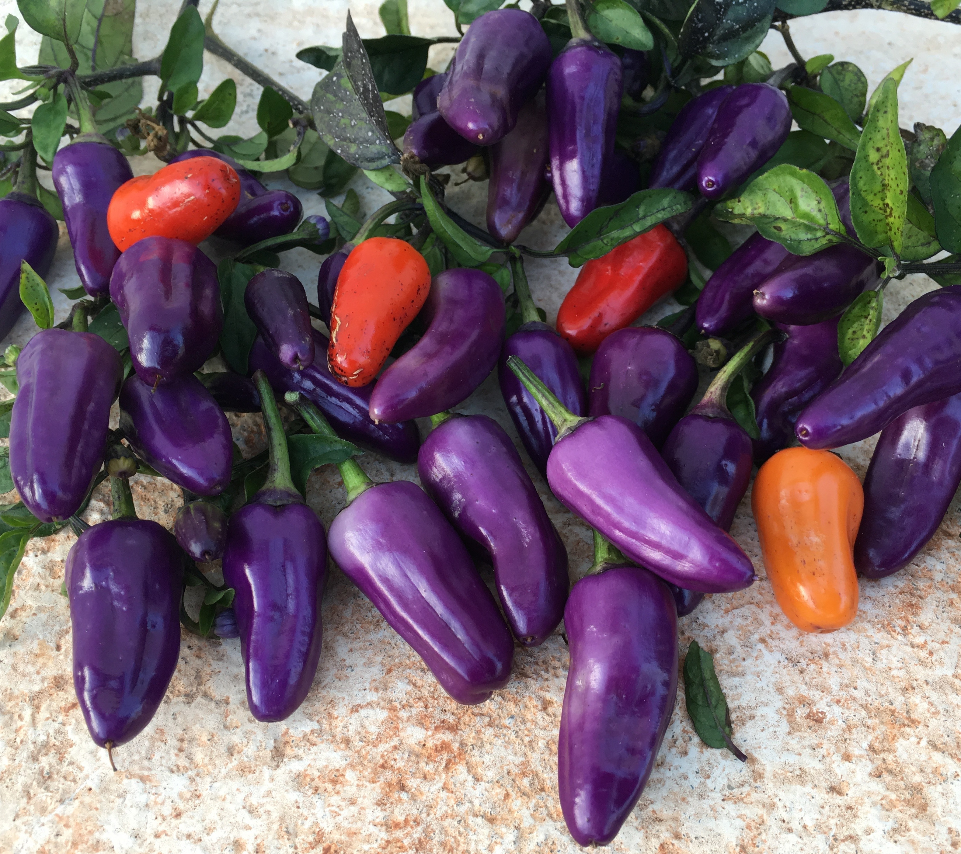 En av de vackraste chili vi odlat. Den ger en kompakt och stadig planta med massor av små, ca 3-4 cm långa, koniska, högblanka, kraftigt violetta frukter, som övergår i rött vid fullmognad. Frukterna passar bra att torka för senare användning. Styrkan är kraftig (50.000-100.000 Scovillegrader), men inte bedövande. Trinidad Purple Coffee är inte så snabb, men hinner ändå ge fin frukt i skyddade lägen på friland i södra delen av landet. Men som all chili vill den ha mycket sol och värme. Utmärkt att odla i kruka, även i ett soligt fönster inomhus.