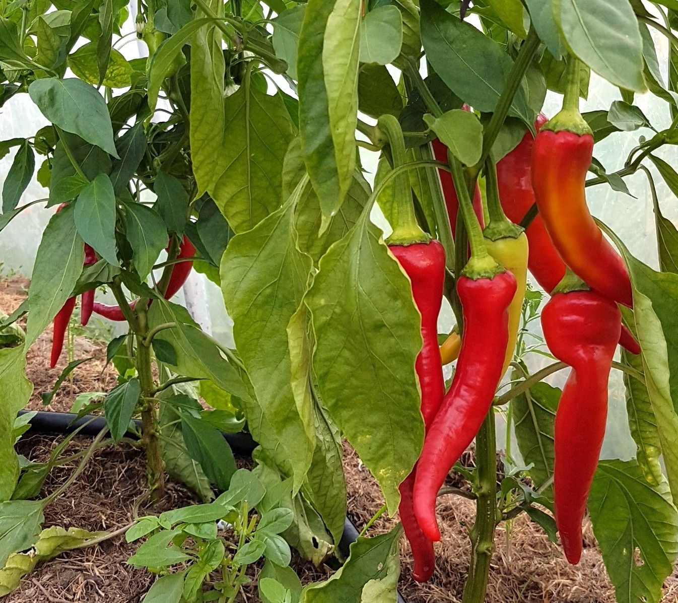 Frukterna skördas ibland gröna, men är inte helt mogna förrän färgen skiftat till rött – eller till gult, orange och brunt för en del sorter. Plantan sätter ny frukt så länge den skördas.