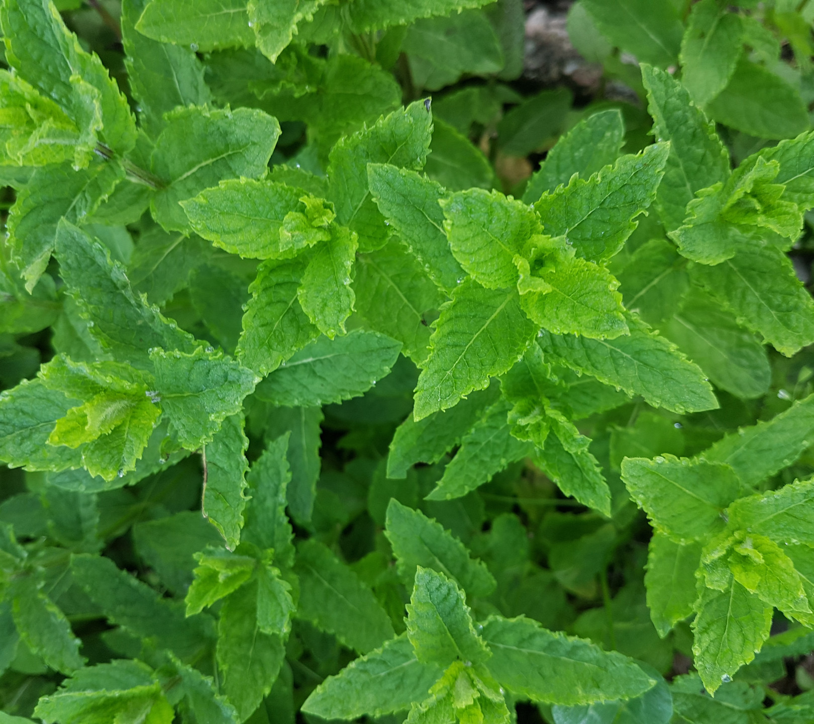 Mentha spicata. Övervintrar i hela landet. De tandade bladen används till te, mintsås, sallader m.m. Skörda bladen innan blomningen. Den vanligaste temyntan.