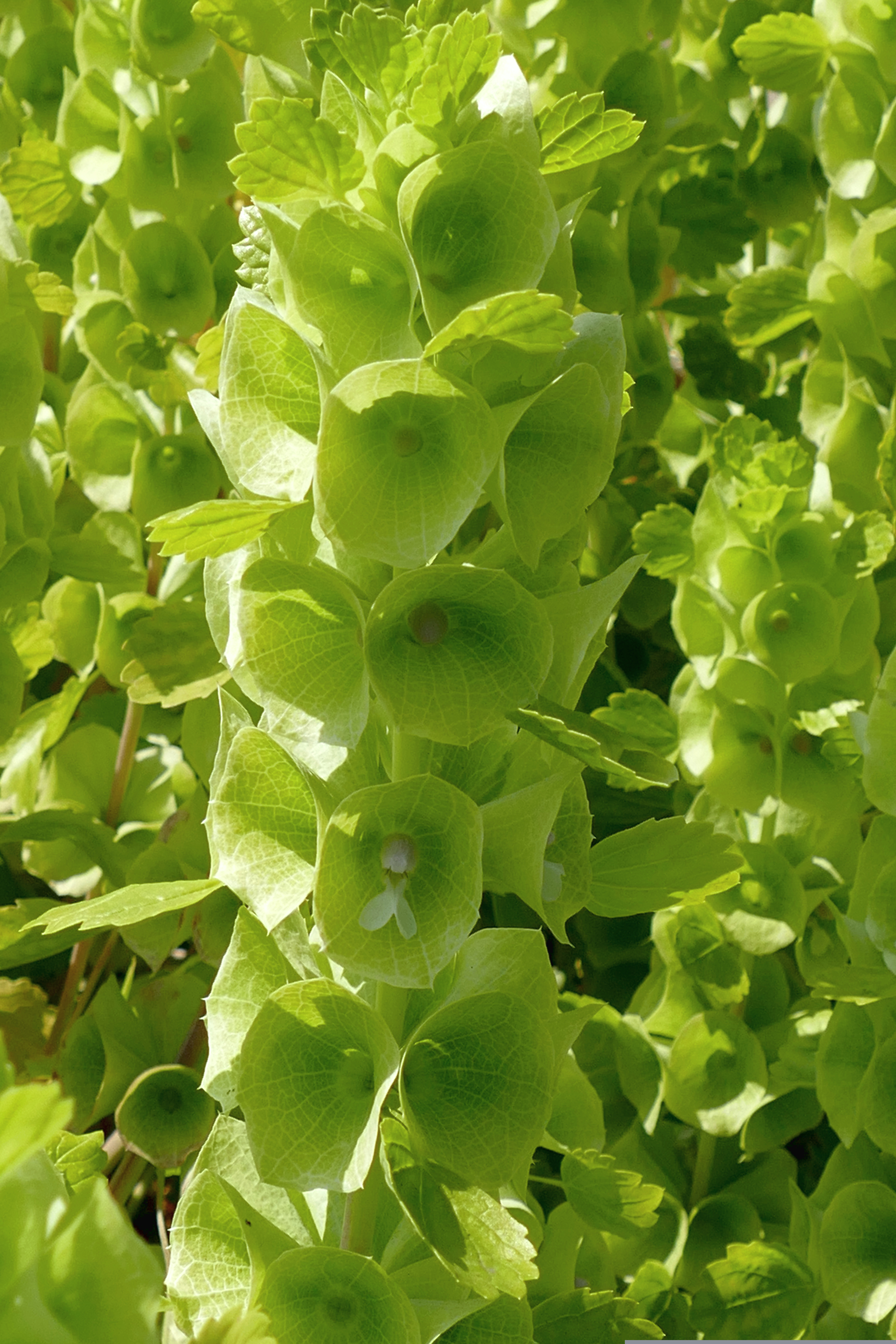 Kallas också Irlands klockor. Har trots namnet sin hemvist runt Kaukasus, Turkiet och Syrien. Den har små vita blommor med olivgröna trattformade foder. De sitter i täta rader på långa, styva stjälkar på 60-70 cm. Skördas för buketter och som eternell innan de nedersta blommorna visar tecken på att vissna. Bladen brukar tas bort innan torkning. Fröna kan behöva stratifieras innan sådd inomhus i mars-april. De kan också sås direkt på växtplatsen i april/maj.